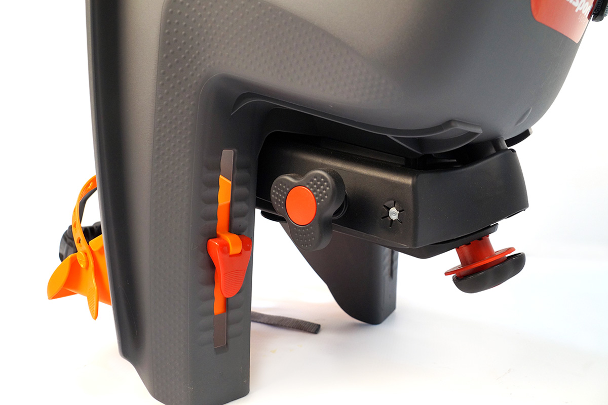 Детское кресло для велосипеда Polisport BILBY RS FF Grey/Orange, с регулируемым углом наклона спинки до 20º, для установки на раму (трубу) диаметром от 28 до 40 мм, 5-ти точечный ремень безопасности, регулируемые по высоте подножки, защита ног от попадания в колесо, мягкая накладка на сиденье, эргономичный дизайн, максимальная нагрузка 22 кг, европейский сертификат безопасности ISO 11243 (winner of an Taenk Bedst I TEST). Вес кресла 4.2 кг.Ограничения! Не устанавливать на карбоновые подседельные штыри! Не превышать допустимый вес ребенка! Обязательно пользоваться ремнями безопасности! По возможности, купить ребенку шлем безопасности!