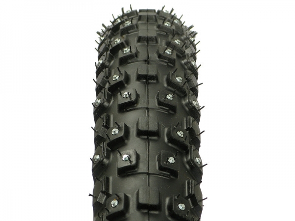 Шипованная покрышка для велосипеда Kenda Klondike, размер 26x2.35 (56-559), 4-х рядная, 368 стальных шипа, стальной корд, устойчивость к проколам, примерный вес 1400 грамм.Настоящая шипованная покрышка для велосипедов должна иметь рисунок протектора шины, способный справиться с различными и порой очень сложными погодными условиями. Kenda Klondike - это надежная шипованная покрышка для удовлетворения потребностей зимнего катания. Отлично проработанный, квадратный протектор, помогает улучшить сцепление с дорогой, при этом он обладает отличной самоочищаемостью. Данная велосипедная покрышка предназначена для зимнего катания на велосипеде, 4 ряда шипов отлично держат даже на льду. Все зимние велопокрышки делают из специальной резины устойчивой к перепадам температур, без потери своих качеств.