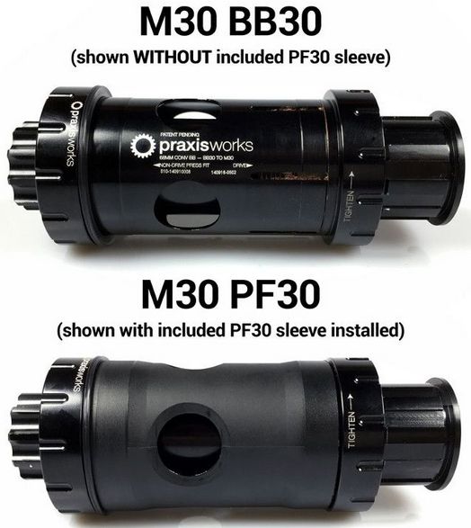 Есть каретки, которые можно установить в рамы ВВ30 и PressFit30 с помощью имеющегося в комплекте пластикового переходника и резьбового распора уплотнения в диаметре: