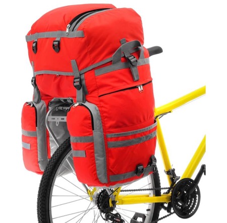 На что нужно обратить внимание в первую очередь: велорюкзак типа "штаны" должен быть прочным и легко отстегиваться от багажника, приспособлен для переноса и под различную нагрузку (коврик, топор, насос, палатка), обязательно должен иметь светоотражающие элементы.