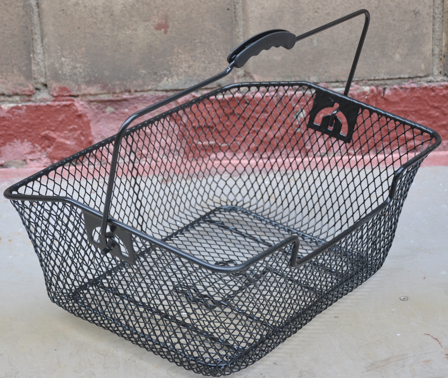 Корзина велосипедная, на задний багажник, размеры 40(ш)x30(д)x18(г) cм, крепление прижимным механизмом.