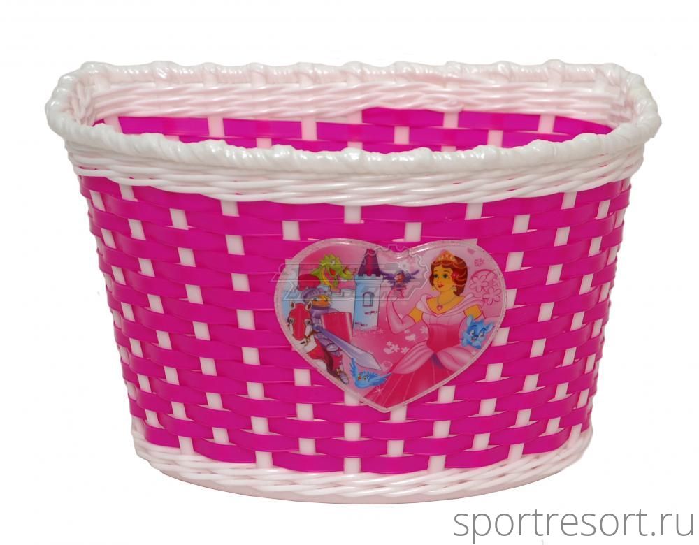 Корзина детская 24х16,5х15,5см пластмассовая универсальная. крепление на руль двумя ремешками, бело-розовая