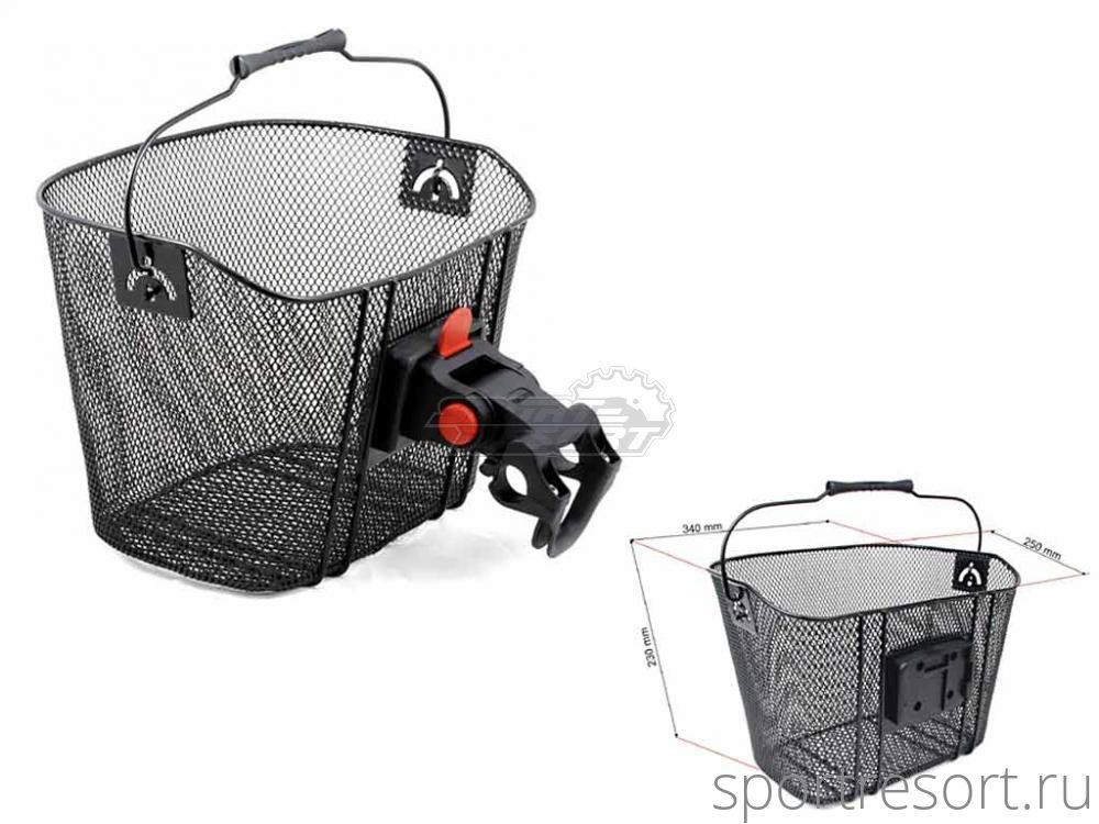 Корзина передняя, 34х25х23 см, быстросъемная, для руля 25,4/31,8 мм, с ручкой, стальная черная