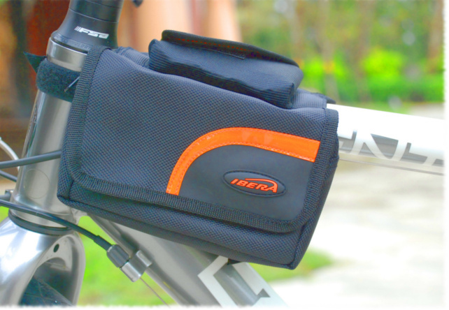 Велосумка на раму Ibera IB-TB3, конструкция типа мини-"штаны", крепится на верхнюю трубу у рулевого стакана, двойные карманы, влезет инструмент, документы, фотоаппарат, ключи и тд, со светоотражающими полосками PVC, с влагозащитным чехлом и верхним карманом для телефона. Очень удобная велосумка, самые необходимые вещи у вас под рукой, возможность достать мобильный телефон на ходу, крепится двумя ремешками, за рулевой стакан и раму.