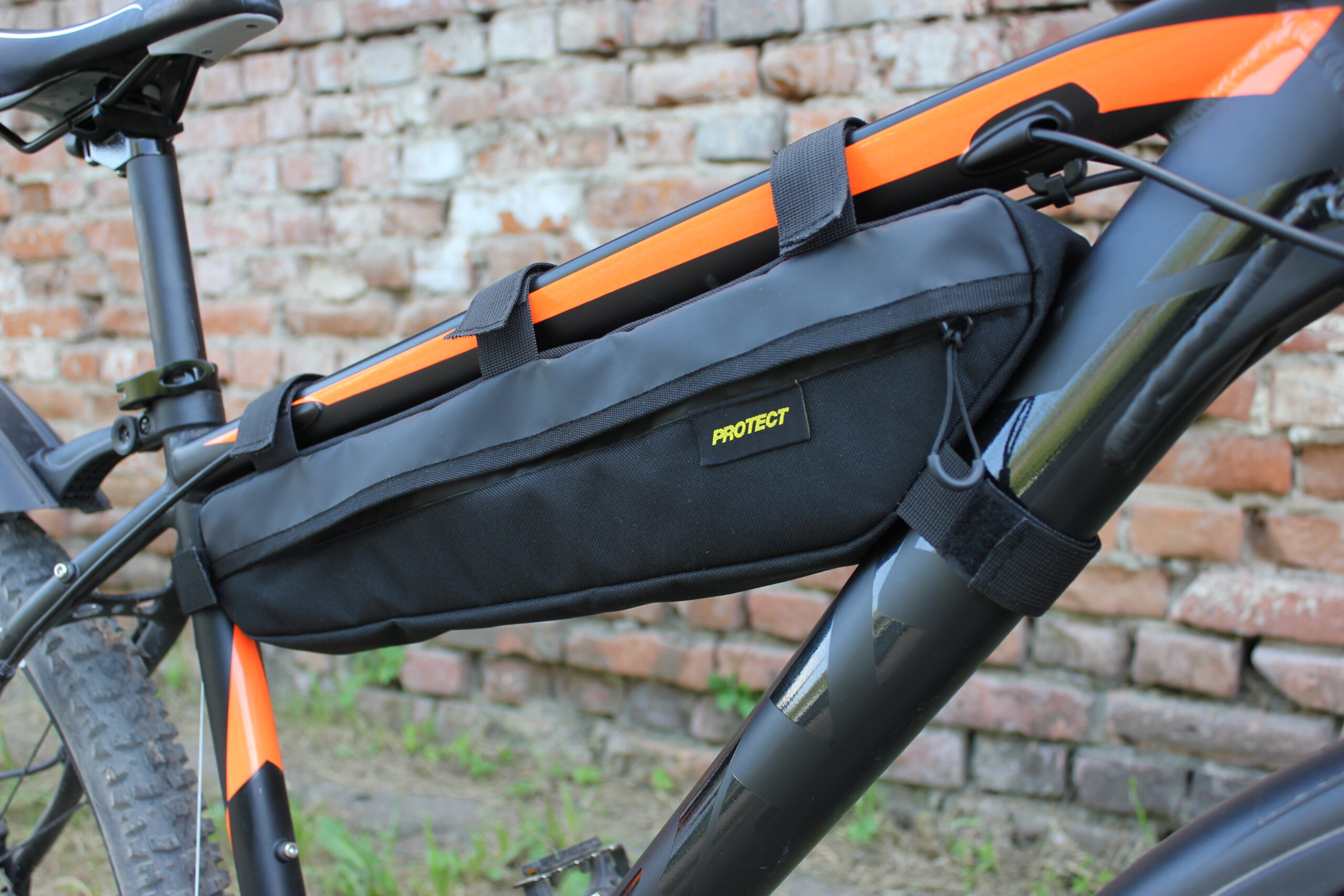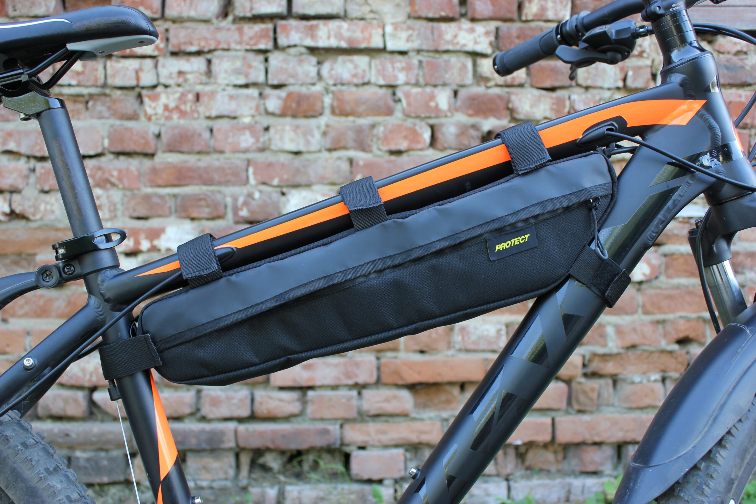 Велосумка под раму, трехслойная. Удобная и практичная сумка для велотуризма или велосипедных поездок по городу. Имеет основное отделение для размещения необходимых вещей, также поместится насос. Размеры сумки позволяют использовать стационарные места для бутылки. Фиксация сумки — пять точек крепления при помощи контактной ленты на стропе.