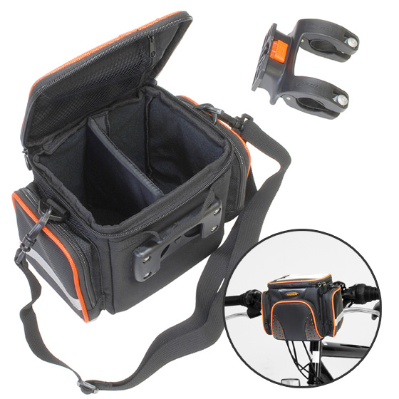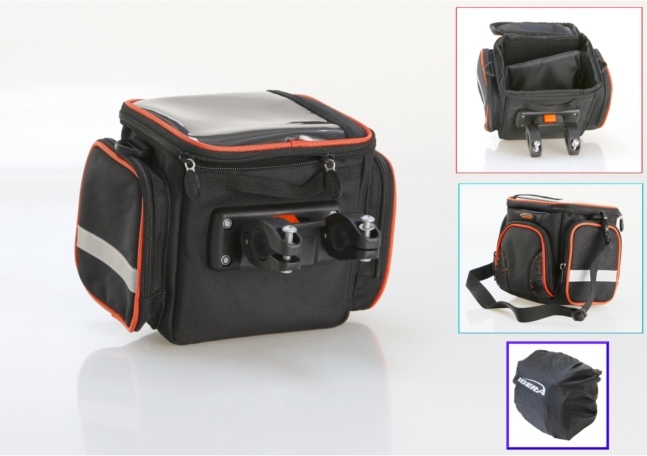 Велосумка на руль Ibera IB-HB2, крепление под руль 25.4/31.8мм, быстросъемный механизм, сверху прозрачный карман для карты, накидной чехол от дождя, ремень на плечо для переноски, PVC полоски.
