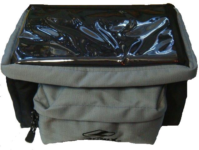 Велосумка на руль Konnix TY-106MQR, быстросъемный механизм (одним нажатием кнопки сумка отстегивается), размеры 28х16х16 см, прозрачный карман для карты, влагоотводящая ткань 3H Reflective, ремень для переноски, черно-серая.