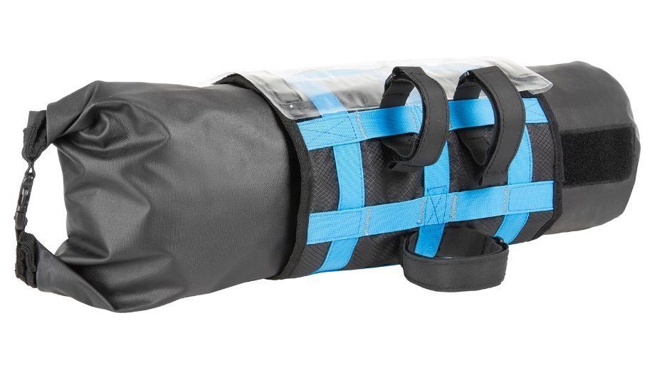 Велосумка на руль M-Wave Bikepacking Handlebar Bag, походная для байкпакинга, раскладная конструкция, увеличенный размер 59х23 см, максимальный объем 10 литров, 100% влагозащитный материал, с прозрачным карманом для карты или навигационной техники.
