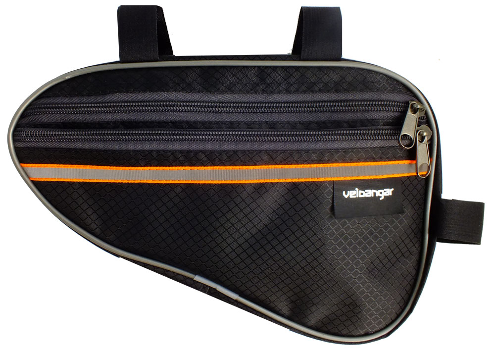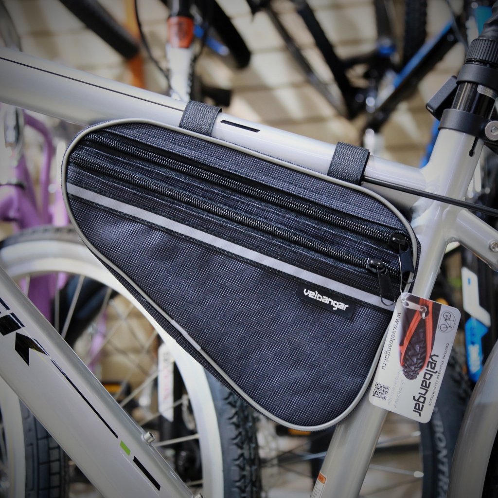 Вместительная подрамная велосумка для полезных вещей, инструментов, карт, запасных деталей и т.п. Три точки крепления к раме.Вес: 160 г