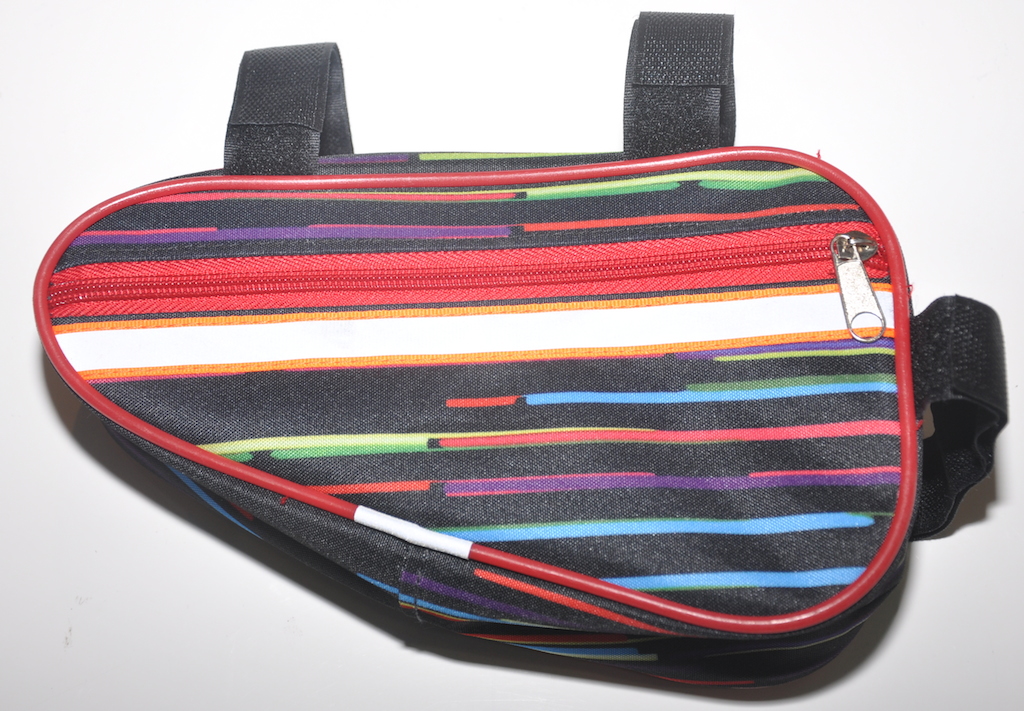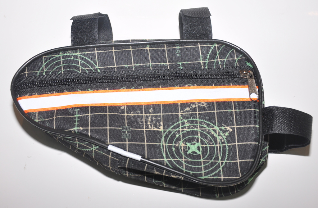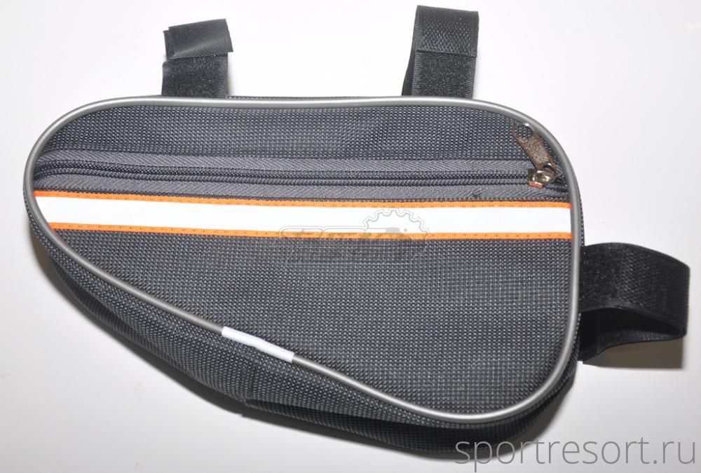 Комплектация подрамной сумки: материал полиэстер 600D, светоотражащие полосы с обоих сторон, три точки крепления к раме (крепления - "липучки"), одно отделение на молнии объёмом 1,5 литра. Вес: 80 г. Размер: 22 см х 13 см х 6 см. Объём основного отделения: 1,5 л.