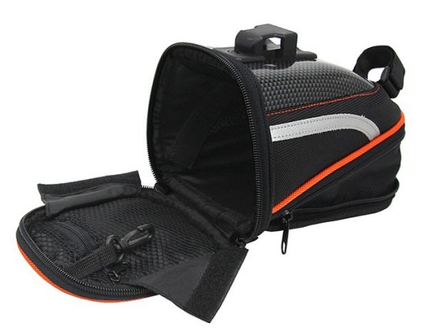 Велосумка под седло IBERA IB-SB1M, размер M, 190х130x110 мм, при желании размер можно увеличить на 20%, быстросъемный механизм, co светоотражающей полосой PVC, верхняя часть сумки жесткая (под карбон), снизу крепёж для насоса, вес 270 грамм.