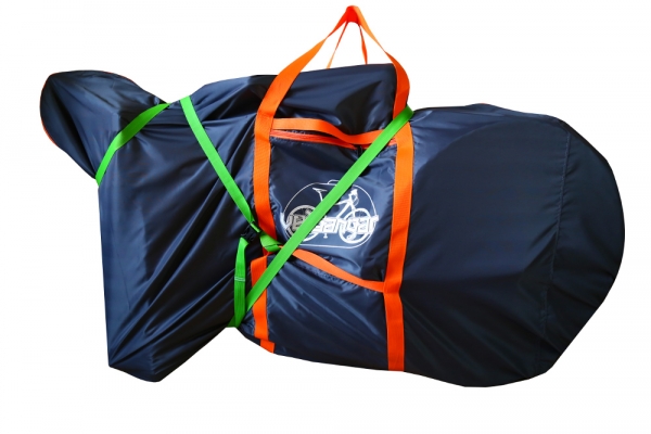 Это классическая компоновка велочехла для перевозки и хранения велосипеда со снятым передним колесом (снятое колесо помещается в чехол вместе с велосипедом). Велочехол складывается сам в себя (чтобы собрать чехол - выверните карман)