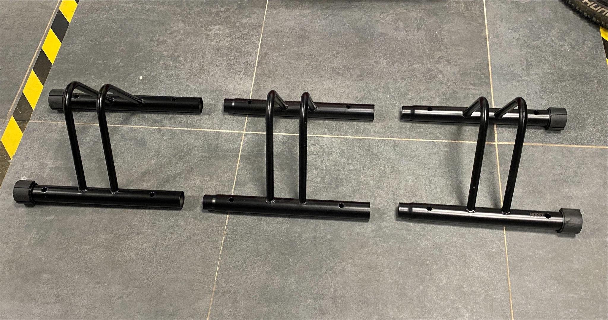 Напольная подставка для 3-х велосипедов HORST H039, универсальная, для велосипедов 12-29', под заднее колесо. Максимальная ширина покрышки 2.4 дюйма. Материал сталь. Сборная конструкция из 3-х частей, можно использовать каждую часть как отдельную подставку. Возможность прикрутить к полу через специальные отверстия.