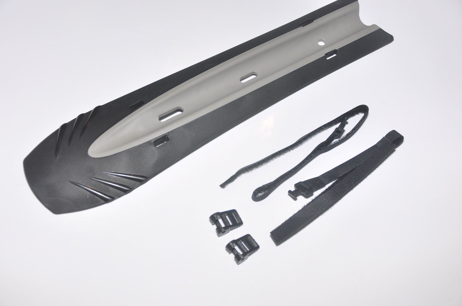 Крыло-щиток на трубу рамы велосипеда, для велосипедов 26"-700С, на нижнюю или подседельную трубу рамы (для защиты от грязи переднего переключателя, размеры 30х5х7 см, крепление ремешками.