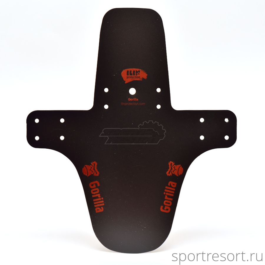 Крыло-щиток Gorilla, длинное, размеры 30х10/14 см, простое крепление хомутами на вилку или на задние перья, материал черный ПВХ-пластик, надписи красного цвета.