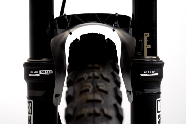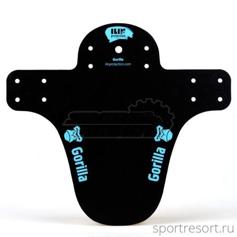 Крыло-щиток Gorilla, короткое, размеры 23х10/14 см, простое крепление хомутами на вилку или на задние перья, материал черный ПВХ-пластик, надписи синего цвета.