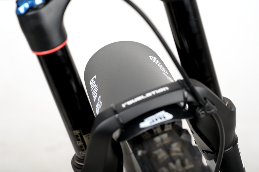 Крыло-щиток Gorilla, короткое, размеры 23х10/14 см, простое крепление хомутами на вилку или на задние перья, материал черный ПВХ-пластик, надписи зеленого цвета.