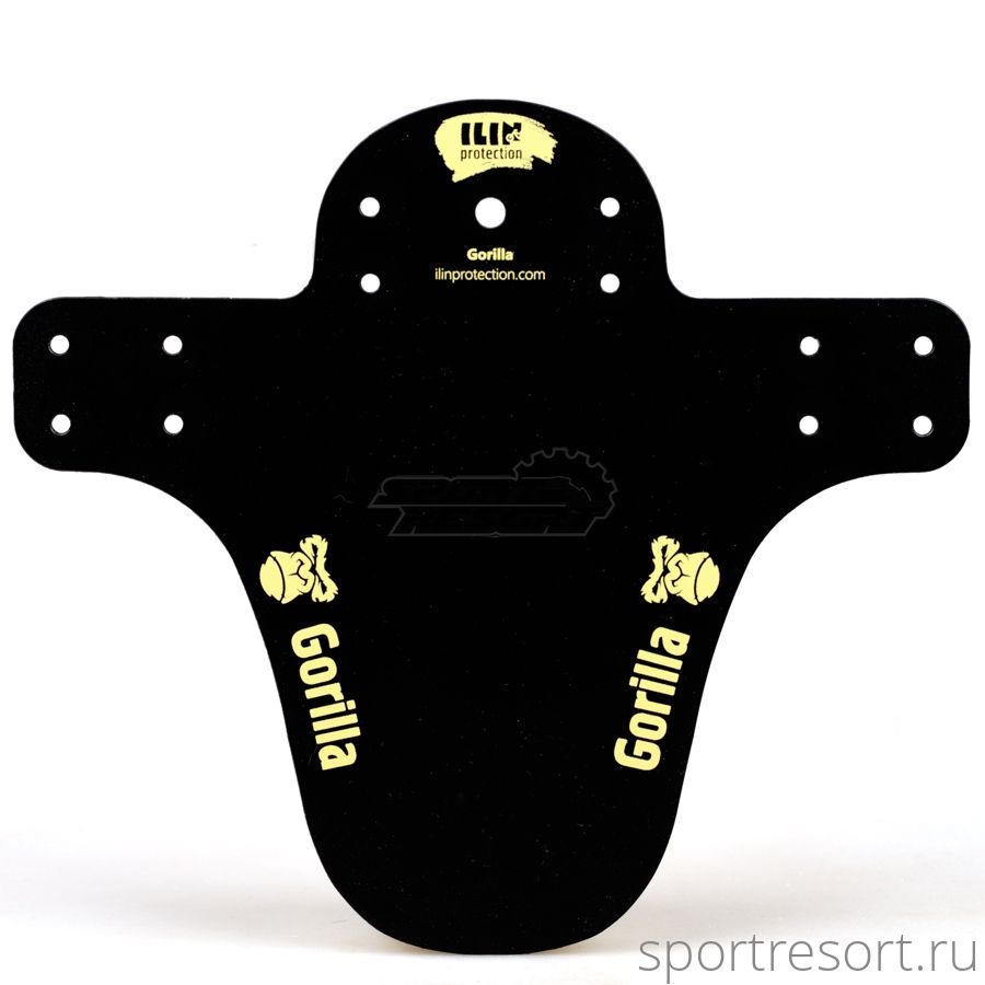 Крыло-щиток Gorilla, короткое, размеры 23х10/14 см, простое крепление хомутами на вилку или на задние перья, материал черный ПВХ-пластик, надписи желтого цвета.