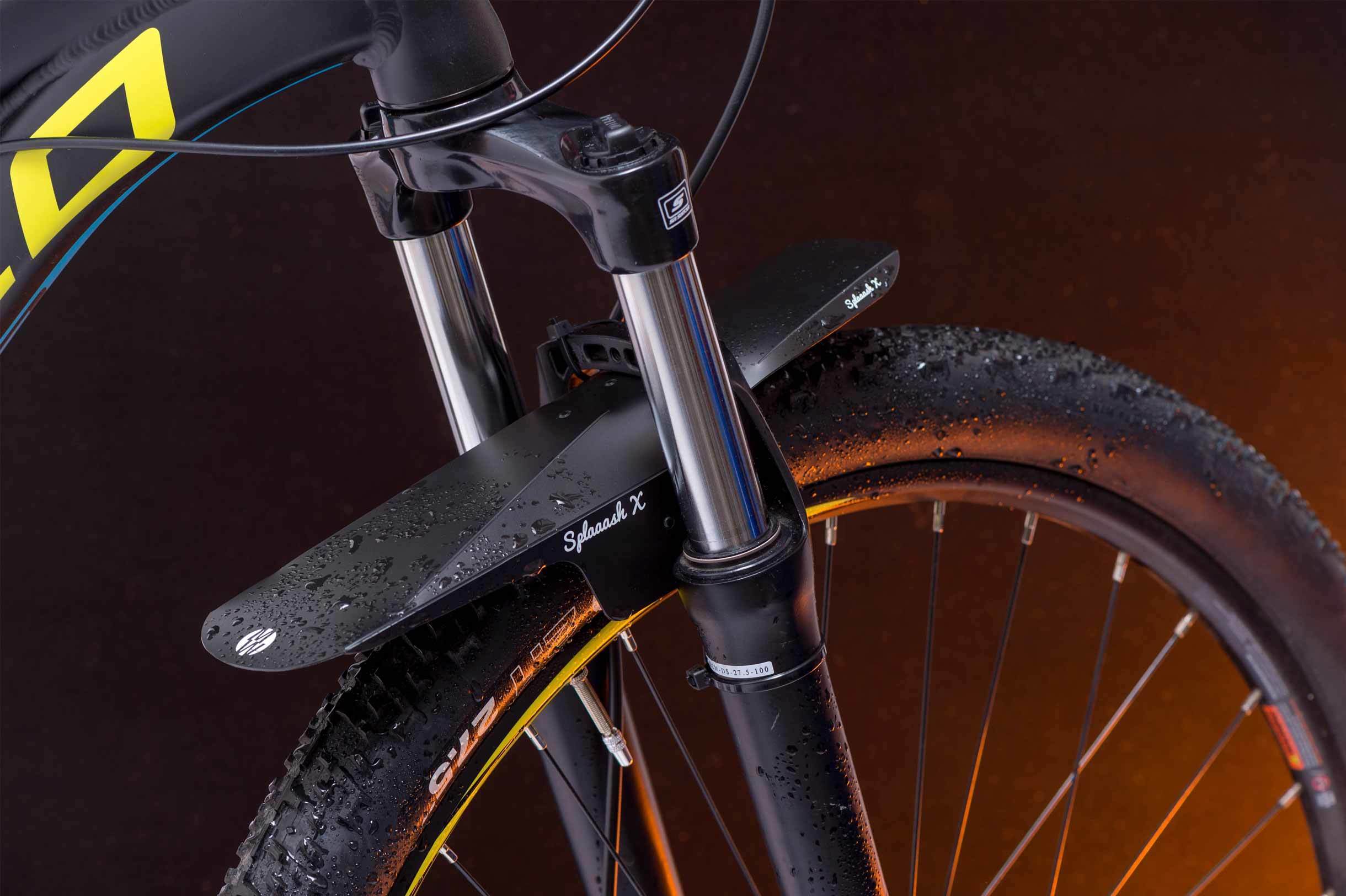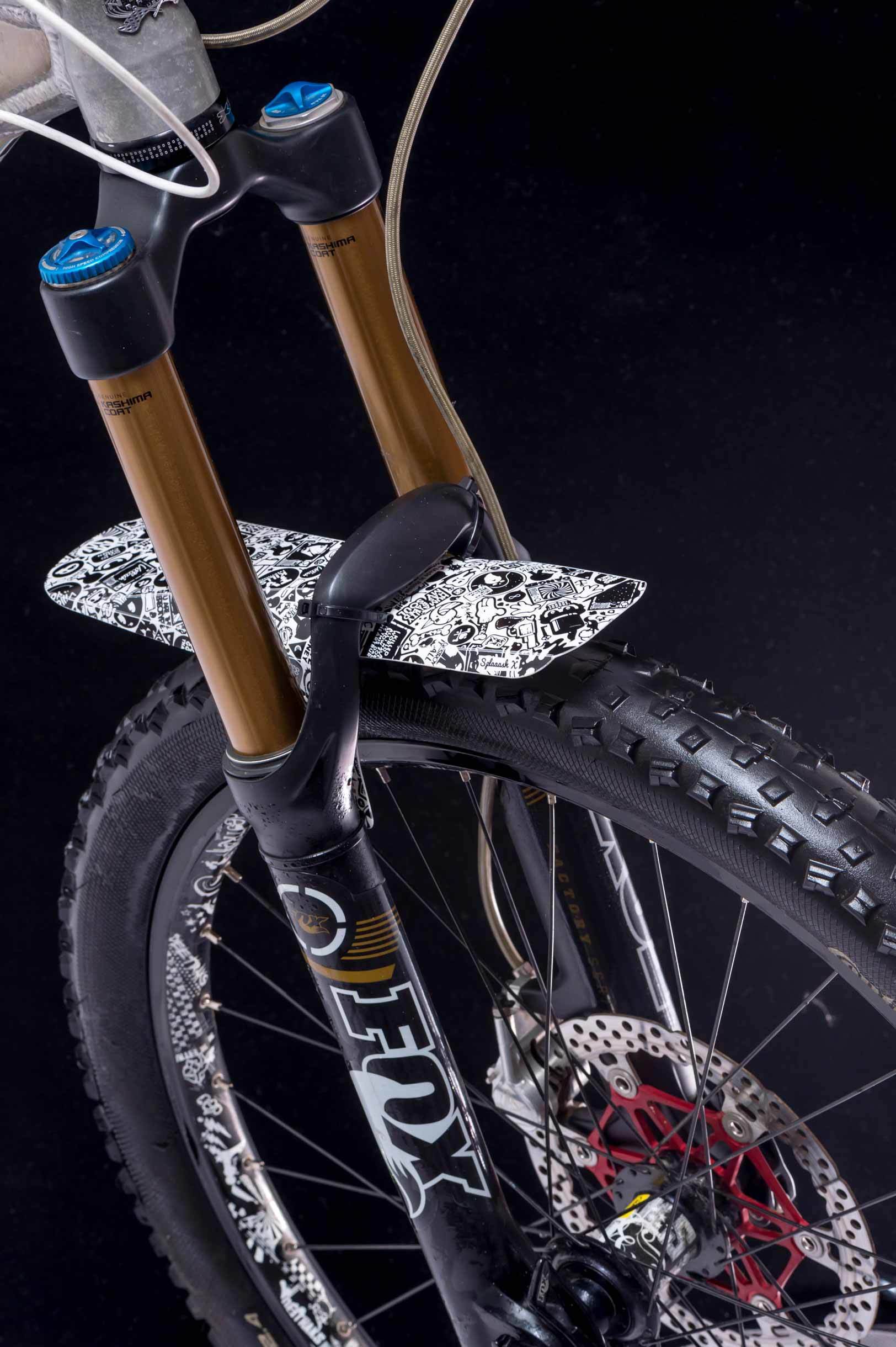 Крыло-брызговик на гориллу вилки. Удлиненные «уши»-крепления позволяют надежно закрепить крыло на штанах вилки, снижая вероятность смещения, либо перекоса крыла во время езды. Боковые выступы увеличены в размерах, чтобы защитить сальники вилки от забивания грязью. Размеры 313 мм x 260 мм.