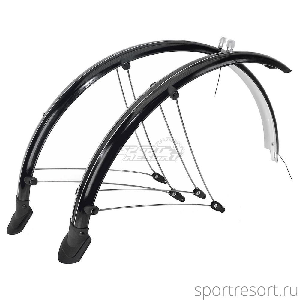 Полноразмерные крылья M-Wave, совместимы с велосипедами 26-27,5" дюймов, ширина 60 мм, крепление на раму усами, с брызговиками, цвет черный.