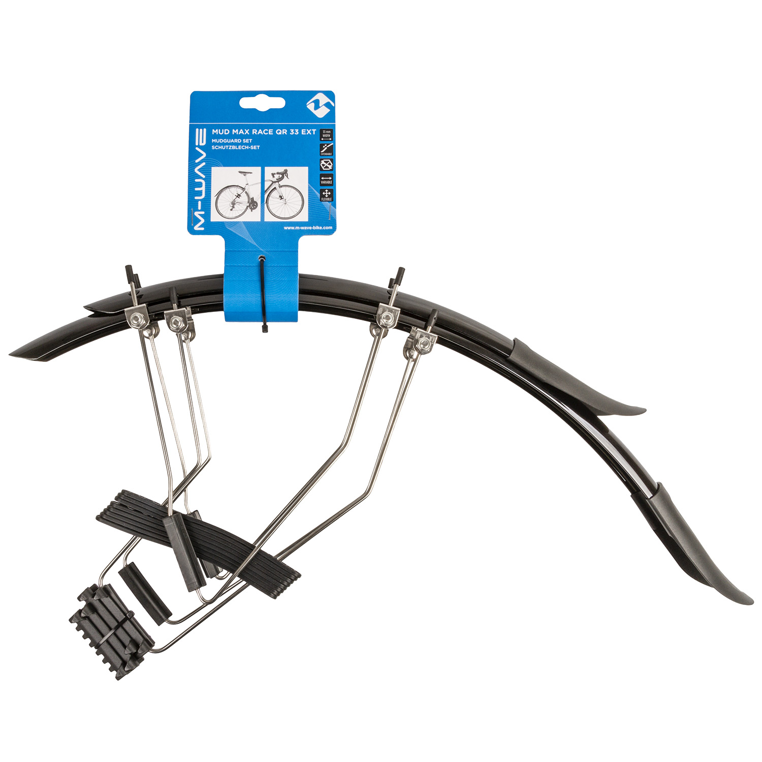 Крылья M-Wave Mud Max Race QR EXT, для велосипедов 28" дюймов, ширина 33 мм, быстросъемные, крепление хомутами на вилку и на задние перья велосипеда, резиновые брызговики.