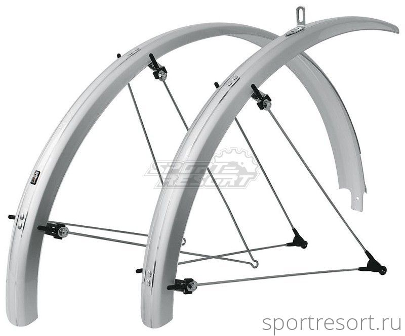 Крылья SKS Bluemels Trekking, для велосипедов 28 дюймов с покрышками 700х28-38, ширина 45 мм, материал крыльев пластик, усы сталь, цвет серебро.