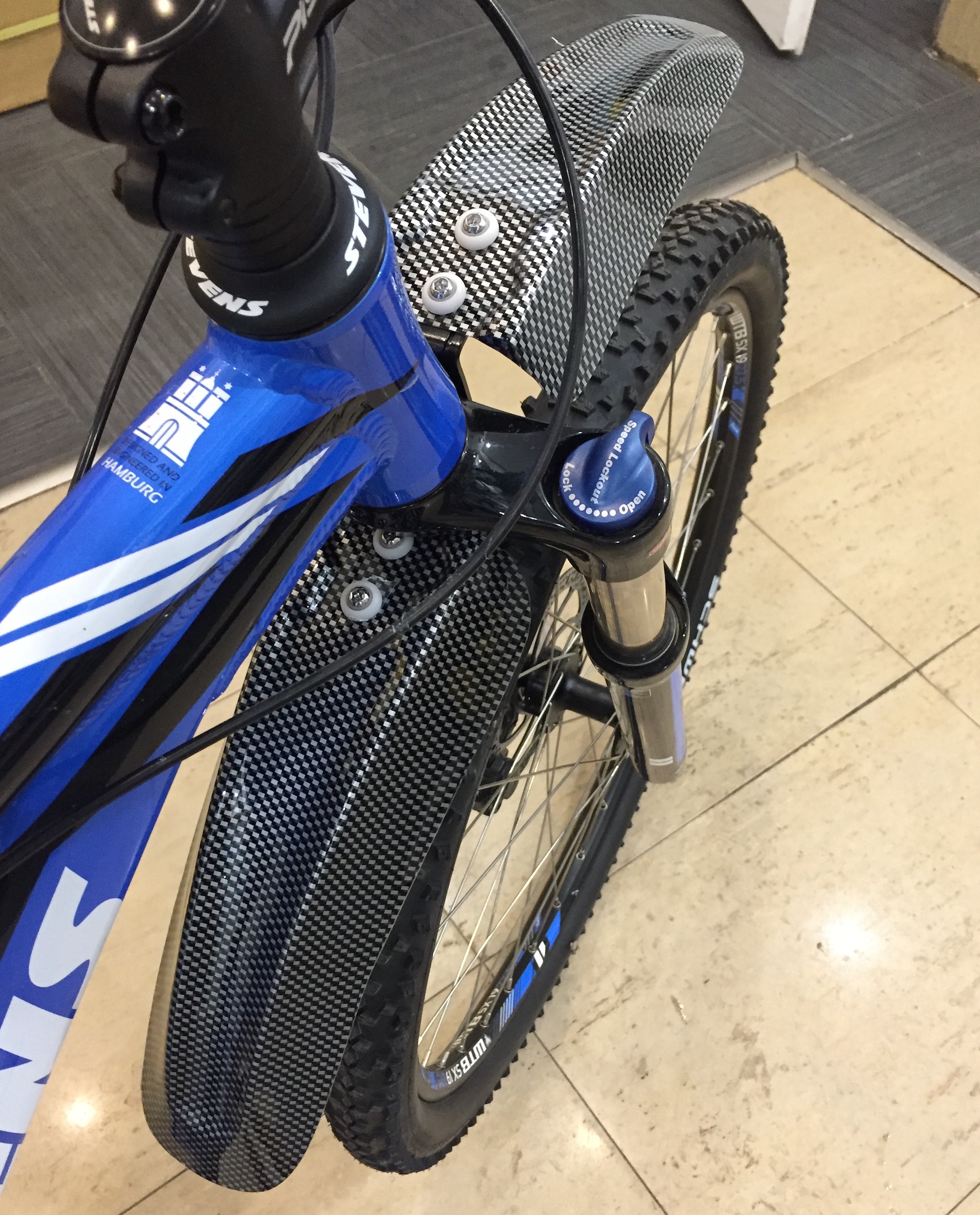 Крыло переднее Acor AFD-2401F Super Lite, двух составное, мотодизайн, крепление в шток или на корону вилки, ширина 100 мм, для покрышек шириной до 2,5 дюймов. Цвет под карбон.