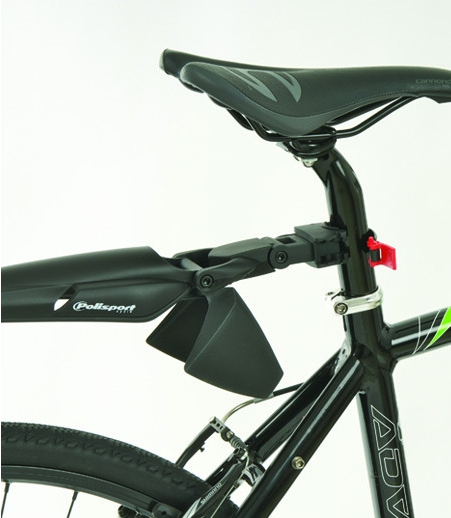 Крыло заднее Polisport X-FIGHTER, для велосипедов 24 - 26 дюймов, универсальная установка на штыри Ø24 to Ø36, ширина 90 мм, длина 475 мм, быстросъемное крепление, дополнительный брызговик на конце, вертикальный улавливатель грязи, прочный пластик, вес 110 грамм.