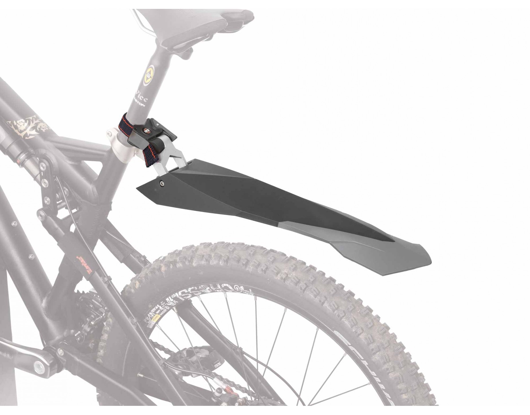 Крыло переднее SKS Grand MOM, для велосипедов 26 дюймов, ширина 110 мм, настраиваемая по высоте конструкция, крепление на подседельный штырь, для экстремального катания, агрессивный дизайн, вес 182 грамма.