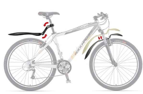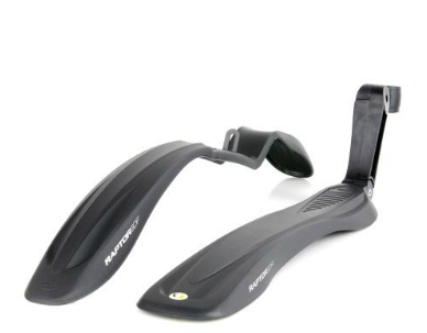 Комплект велосипедных крыльев SIMPLA Raptor Set SDE, совместимы с колесами 24”- 28” дюймов, переднее крыло для всех типов вилок, крепление заднего крыла хомутом на подседельный штырь, вес комплекта 310 грамм.