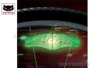 Фонарь безопасности CAT EYE SL-LD120-WG ORBIT, для велосипедных колес, прозрачный корпус, зеленый диод, с батарейкой, быстрая установка без инструментов, максимальная видимость в темноте при вращении колес.Технические характеристики вело фонаря CatEye SL-LD120-WG ORBIT: