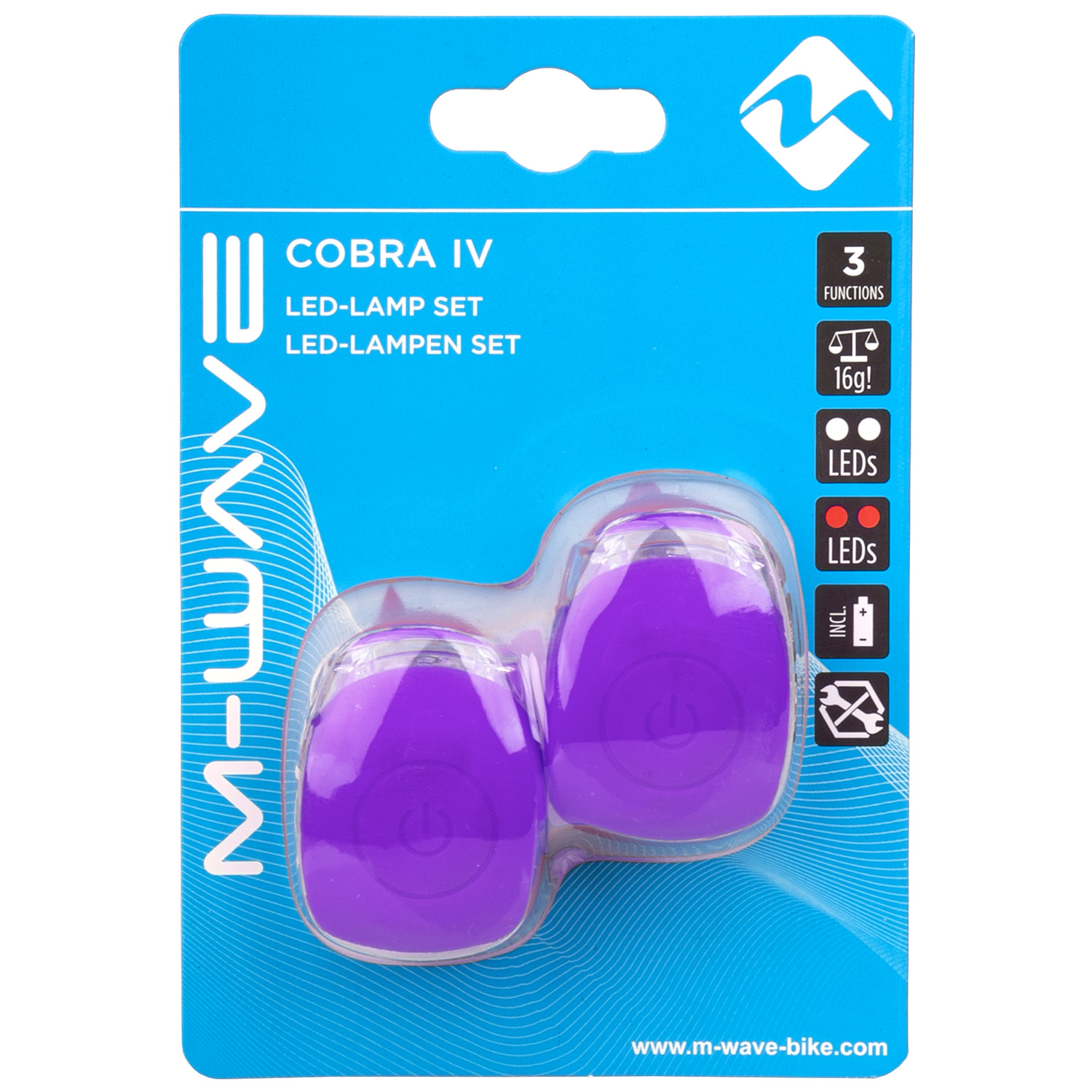 • Комплект фонарей M-Wave Cobra IV Battery Flashing Light Set фиолетовые 5-220639