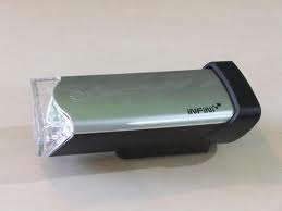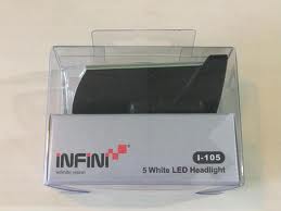 Фара INFINI I-105 Luxo, 5 белых светодиодов, 2 режима работы, водонепроницаемый корпус, установка без инструмента, размеры 102 x 42 x 38mm, батареи AAA x 3, время работы 30/90 - постоянно/мигание.
