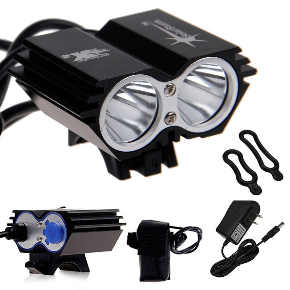 Компактная и мощная фара Ultra Fire PRO-H03, 2 сверх ярких диода CREE XM-L T6 с максимальным световым потоком 2000 люмен, 3 режима свечения + стобоскоп, аккумуляторный блок 18650 в едином корпусе емкостью 6000 mAh, алюминиевый корпус с радиаторами по бокам, крепление на голову (налобный фонарь), вес с батареей 290 грамм.| Производитель | Ultra Fire |