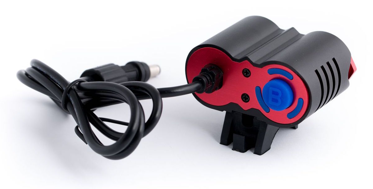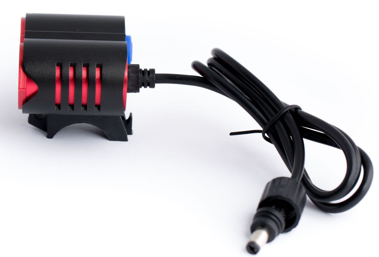 Компактная и мощная фара для велосипеда Ultra Fire PRO-H03 RED на сверхъярких светодиодах CREE XM-L2 T6 с максимальным световым потоком 2200 люмен, 3 режима свечения + стробоскоп, аккумуляторный блок из литий-ионных батарей 18650 в едином корпусе, емкостью 6000 mAh (4х1500 mAh/8.4V), 3-х уровневый индикатор заряда.Комплектация вело фары Ultra Fire PRO-H03RED: