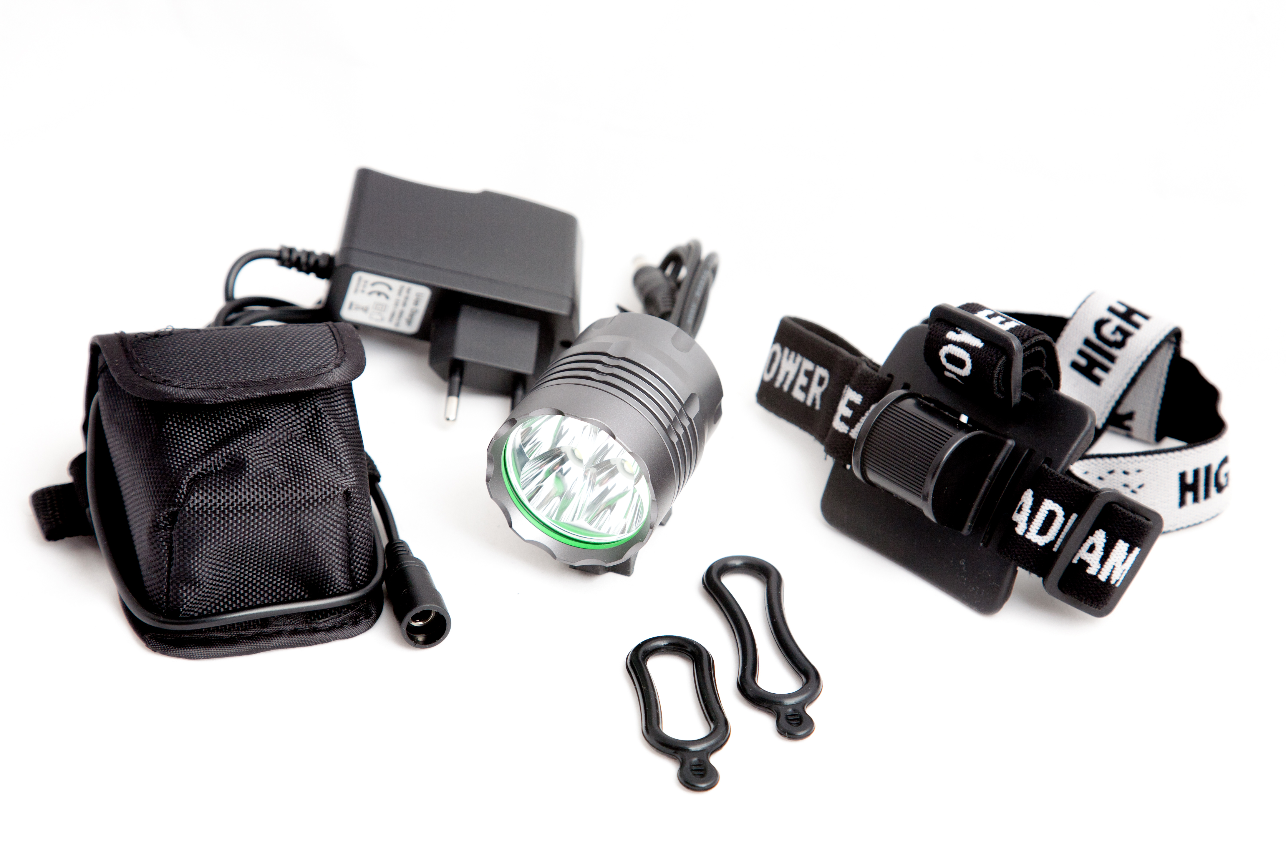 Компактная и мощная фара для велосипеда Ultra Fire PRO-NL304 на сверх ярких светодиодах CREE XM-L T6, мощность 4800 люмен, 3 режима свечения + стобоскоп, аккумуляторный блок 18650 емкостью 9000 mAh, полностью алюминиевый корпус, налобное крепление, вес 180 грамм (без батареи).Комплектация вело фары Ultra Fire PRO-NL304: