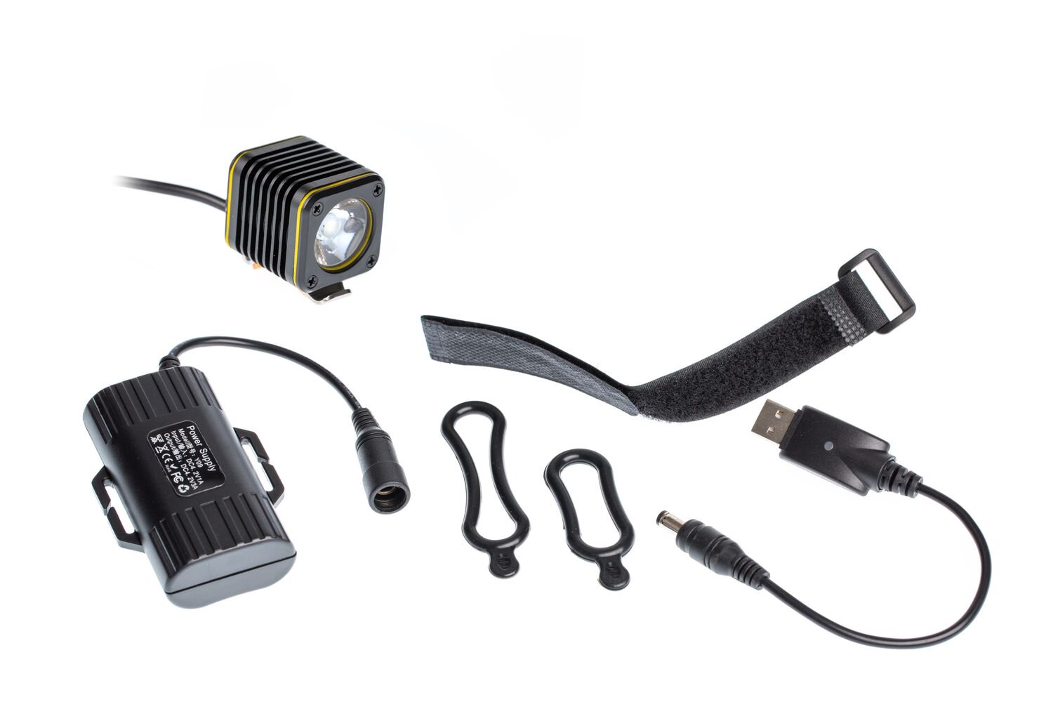Фара Ultra Fire PRO-Q701, светодиод CREE XM-L2 U2, максимальная яркость 800 Lm, аккумулятор 4400mAh (Li-ion), 4.2 вольта, время зарядки 5 часов, время работы от 5 до 10 часов, режимы работы: 25%(10ч), 50%(5ч), 100%(2.5ч), flash(5ч), влагозащищенный корпус IPX4, материал корпуса алюминиевый сплав.Комплектация: велофара, внешний аккумулятор, крепление фары на руль, крепление фары на голову, зарядное устройство, инструкция.