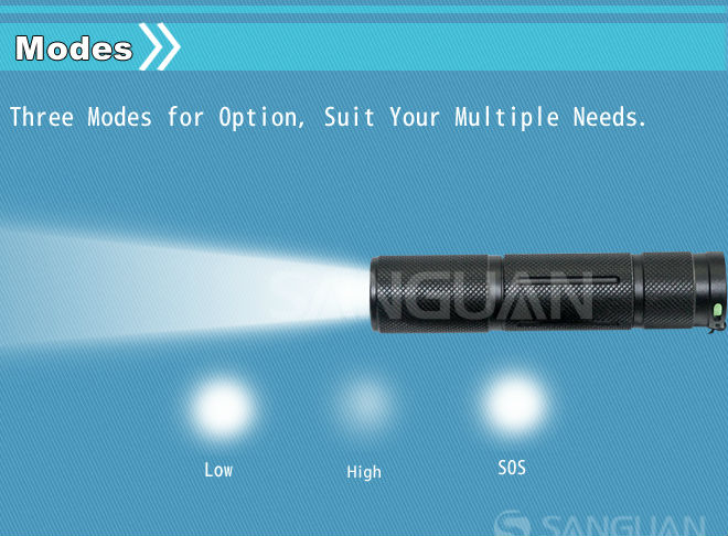 Компактный фонарь SANGUAN A3, диод Cree 7090 XR-E R5 LED, мощность 320 люмен, полностью алюминиевый и влагостойкий корпус, питание 1AA-14500 литиевый (Li-ion) аккумулятор, 3 режима работы, время работы 3-3.5 часа, размеры 98х21 мм, вес 56 грамм. Докупив крепеж на руль, можно использовать как велосипедный.| Производитель | SANGUAN |