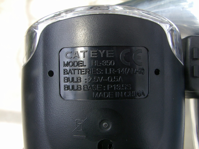 Фара велосипедная Cateye HL-350, галогеновая лампочка 2.5V-0.5A, оптическая система дает мощный луч, вес без батареек 98 грамм, время работы 17 часов, питание от 2-х батареек типа С.
