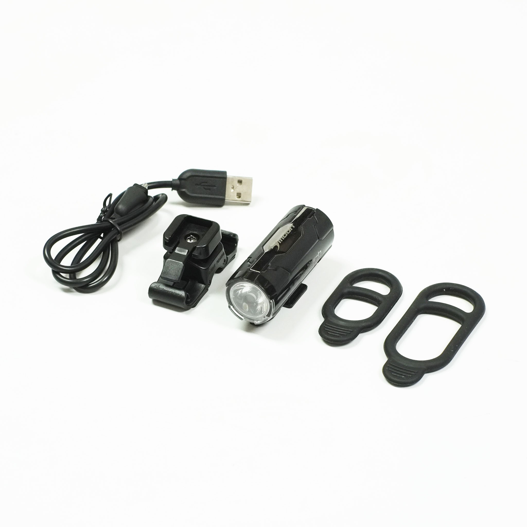 Велофара Moon Aerolite-H 1, диод  CREE XP-E2 (R3), маскимальная мощность 100 люмен, 6 режимов работы, до 11 часов работы от одной зарядки, встроенный аккумулятор (3.7V 700 mAh), USB зарядка, влагозащита IPX4, универсальное крепление, вес 40 грамм.