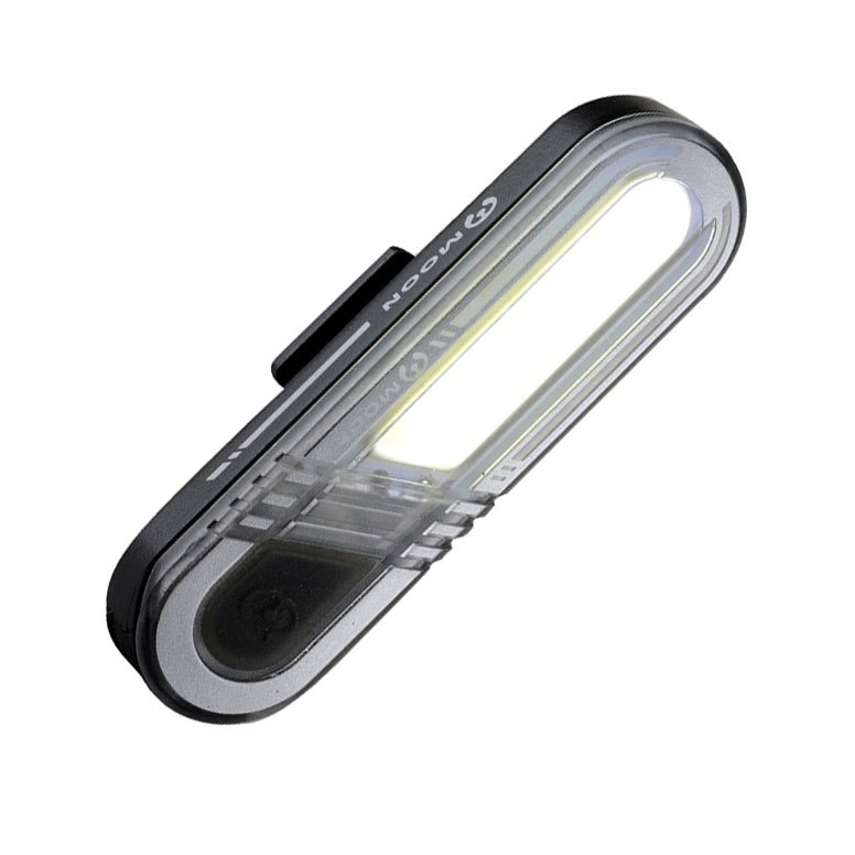 Велофара Moon CRESCENT, технология COB LED, максимальная мощность 50 люмен, 6 режимов работы, до 6 часов работы от одной зарядки, встроенный аккумулятор Li-Po (3.7V 300 mAh), USB зарядка, универсальное крепление, вес 20 грамм.