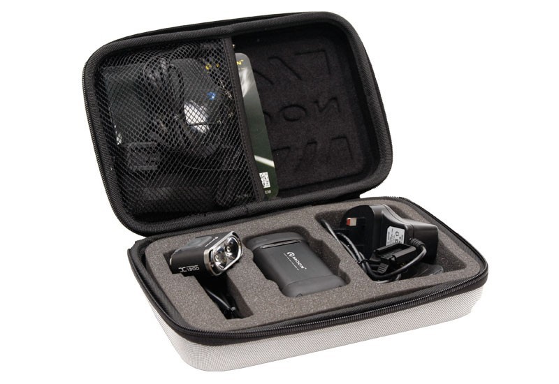 Мощная велофара Moon X-Power 1300 с максимальным световым потоком 1300 люмен, 2 LED светодиода Cree XM-L U2, 7 режимов работы (низкая, стандартная, высокая и максимальная яркость, проблесковый, стробоскоп, SOS), до 9.5 часов (низкая яркость), внешний литий-ионный аккумулятор XP-BS-S2 (7.4V 3300mAh) с функцией USB Power Bank (5V/1A), выносная кнопка включения и выключения, кабель удлинитель, индикатор заряда. Размер фары 46 х 47 х 22 мм. Вес: велофара 80 г, аккумулятор 196 г. Универсальное крепление на любые рули или шлем.