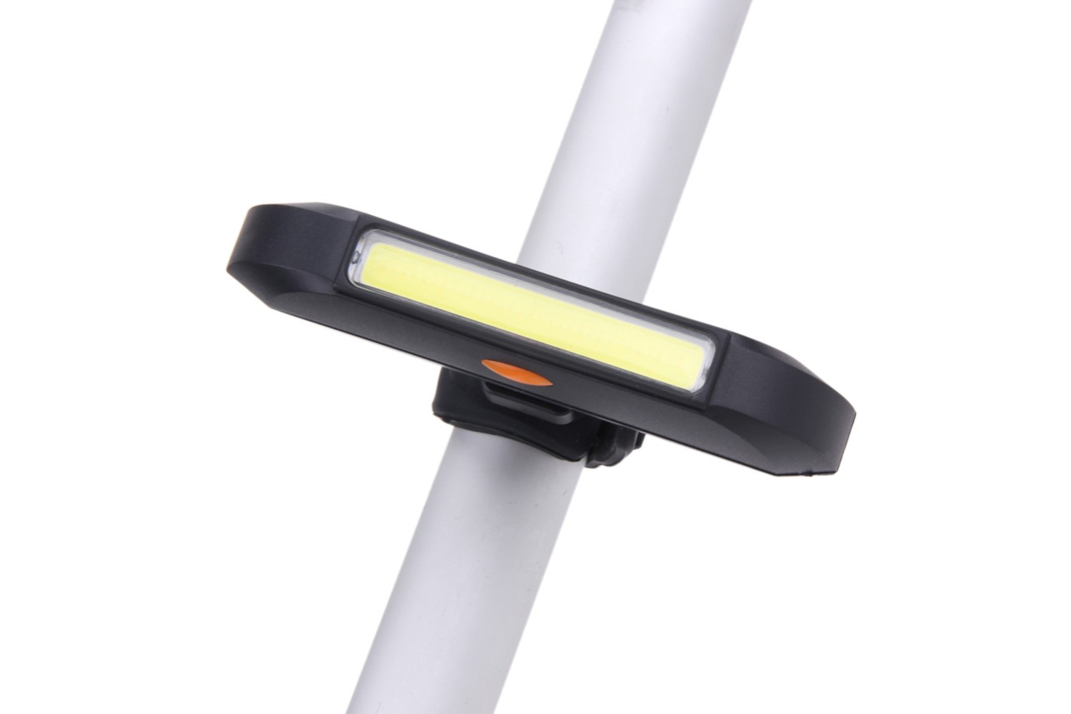 Фонарь задний MKL-011, источник 24 COB, максимальная мощность 50 Lm, 3 режима, питание 2хAAA (не входят в комплект), универсальный хомут.