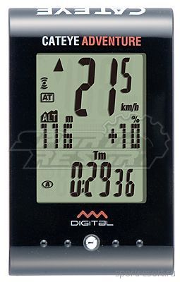 Беспроводной велокомпьютер CatEye AT200W Adventure, 14 функций, 13 опций, с альтиметром, цифровая передача данных, большой дисплей, простое крепление (без инструмента). Для доступа к функциям компьютера используется технология ClickTec Plus ™ (девайс реагирует по-разному в зависимости от места нажатия на дисплей). В итоге даже на сложной местности пользоваться велокомпьютером легко. Что касается дизайна, то ADVENTURE выглядит достаточно грубо для бездорожья и достаточно элегантно для шоссейных велосипедов. БЕЗ БАТАРЕЙ В КОМПЛЕКТЕ!Функции