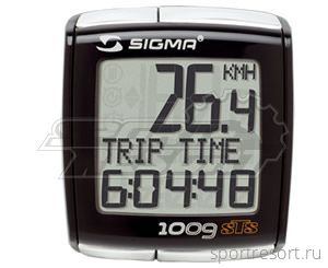 Беспроводной велокомпьютер Sigma BC-1009 STS, беспроводной с цифровой кодированной радиопередачей, большой читаемый дисплей.Функции: