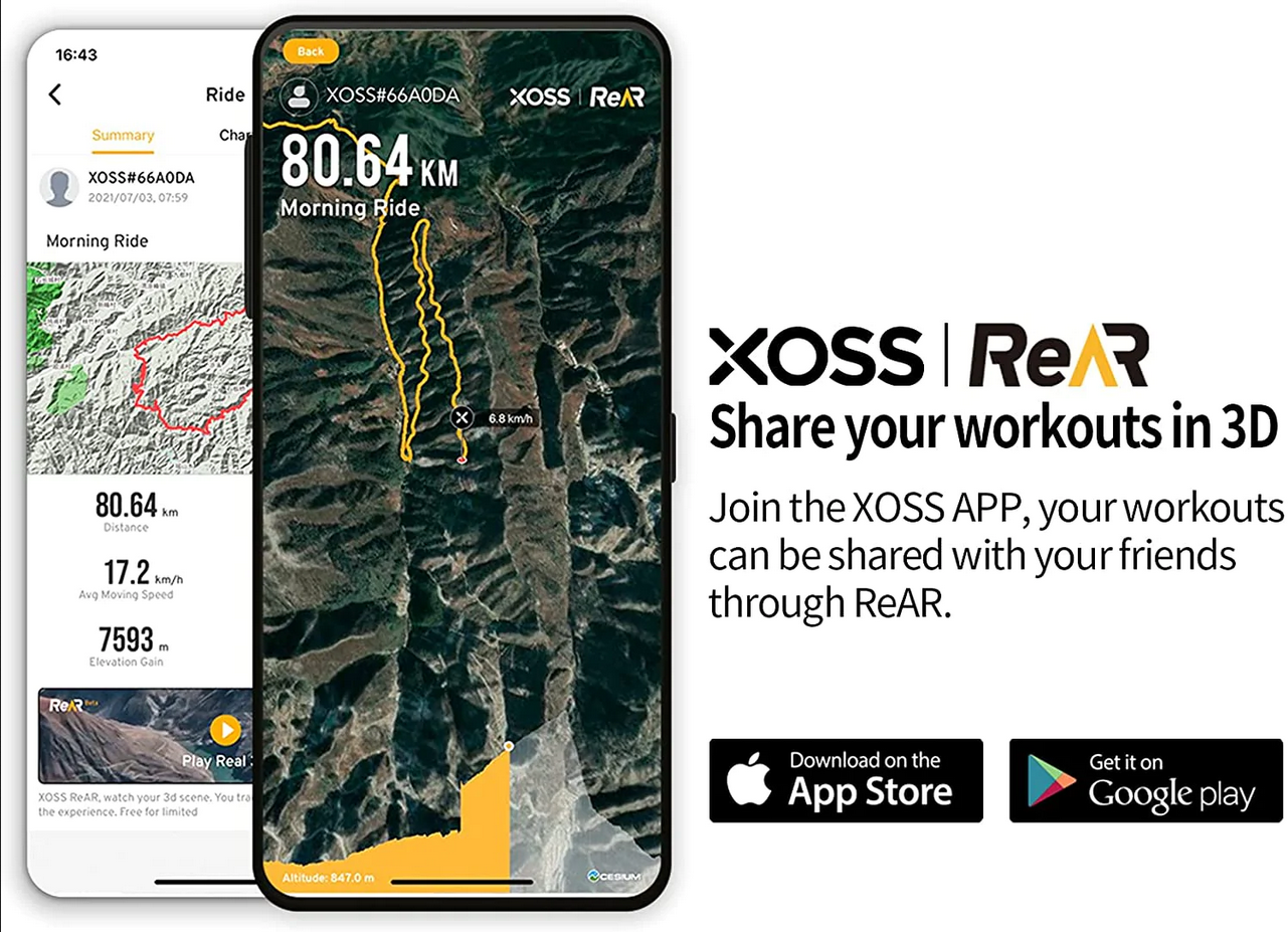 Загрузите приложение XOSS в iPhone App Store или Google Store. В паре со своим смартфоном вы можете просматривать подробную информацию и анализ своих действий во время езды. Примечание. Для работы приложения требуется мобильный телефон с Bluetooth 4.0 или выше.