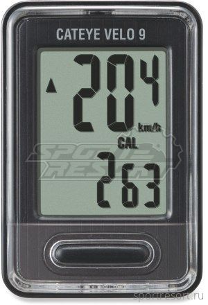 Велокомпьютер CatEye CC-VL820, проводной, 9 функций, большой экран, универсальная установка. Velo 9 простой и удобный велосипедный компьютер, имеет большой экран, управление осуществляется одной кнопкой, универсальный кронштейн, который можно установить на вынос или руль.Функции включают: текущая, средняя и максимальная скорость, время, расход калорий, расстояние (общее и текущее) и Carbon Of fset.