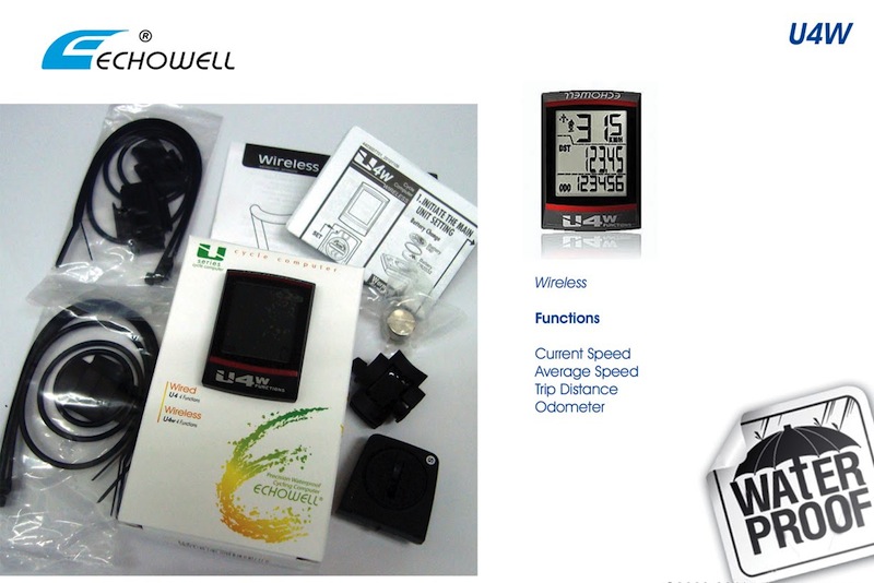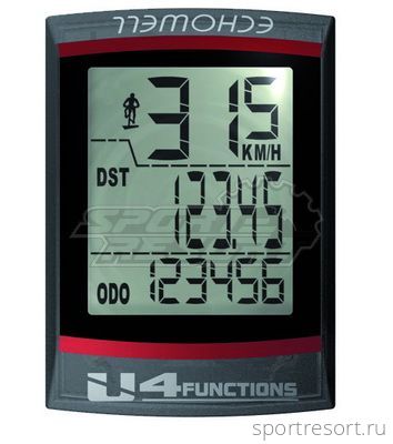 Велокомпьютер Echowell U4, 4 функции, влагозащищенный корпус, миниатюрный размер, большой читаемый шрифт, кнопок управления нет, вся информация выводится в три строки, для велосипедов 18-28 дюймов, размер 34 х 48 х 13 мм.Основные функции: