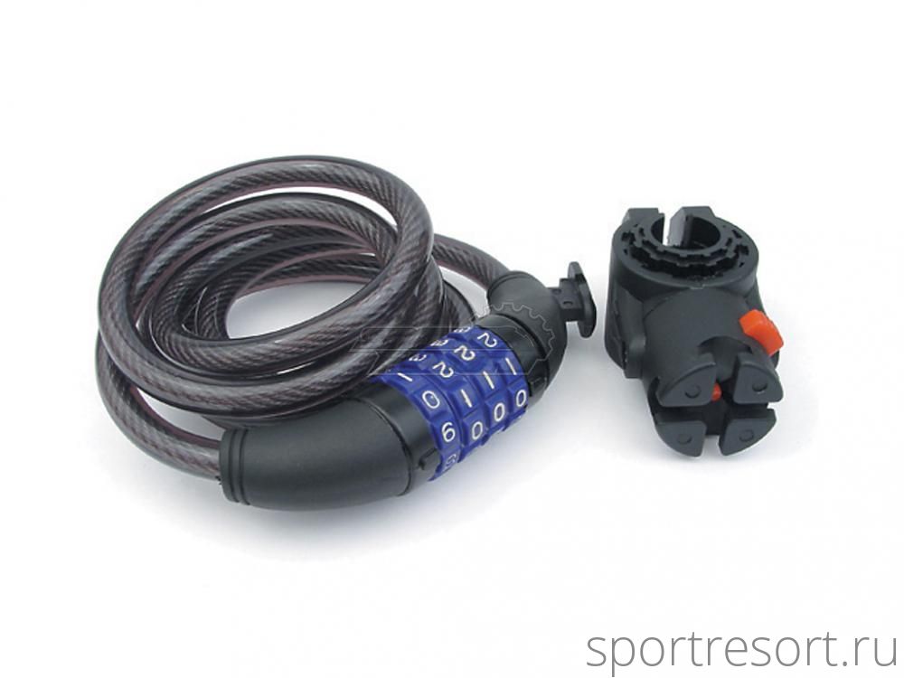 Замок велосипедный, трос 8х1500мм, механизм кодовый четырёхразрядный. В комплекте крепёж для транспортировки на раме велосипеда. Цвет чёрный