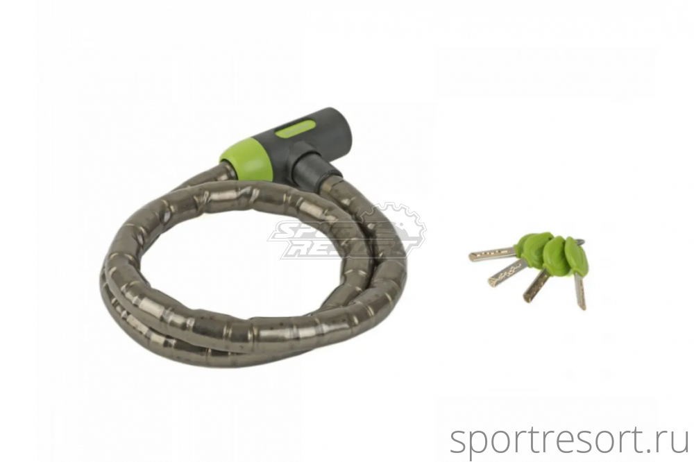 Велозамок Author 25х1200 мм с ключами C-Armored (черно-зеленый)